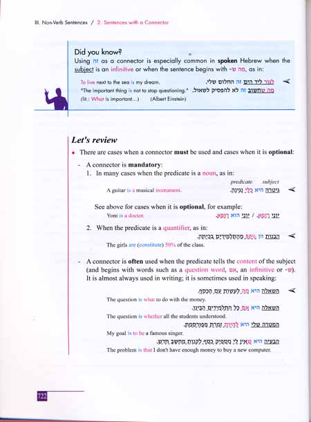 • Examples in Hebrew accompanied by English translations